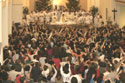 Der ganze Platz rund um die Kirche, vor dem Außenaltar, der große Saal und das große Zelt waren übervoll von Gläubigen. Das ganze Programm wurde auf Videoleinwand im Großen Saal übertragen.