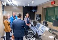 Vedran Vidovic, Direktor des Informationszentrums Mir Medjugorje und Sanja Pehar, Chefredakteurin von Radio Mir Medjugorje empfingen die Delegation und berichteten unter anderem, dass täglich weltweit viele Menschen das liturgische Abendprogramm in ihrer Sprache mitverfolgen. Als Geschenk übergab Vedran Vidovic Bücher, die das Informationszentrum Mir publiziert hatte.