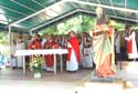 Am Gottesdienst im Bereich der alten Kirche nahmen hauptsächlich Pfarrangehörige aber auch Pilger teil. Nach der hl. Messe wurde die Statue wieder in einer Prozession in die Kirche zurückgetragen, während man wieder die Litanei sang.