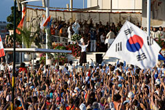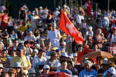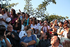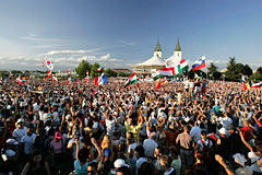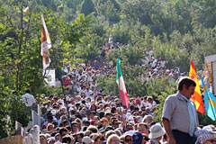 "Dear Children! Today I am happy to see you in such great numbers, that you have responded and have come to live my messages. I invite you, little children, to be my joyful carriers of peace in this troubled world. Pray for peace so that as soon as possible a time of peace, which my heart waits impatiently for, may reign. I am near to you, little children, and intercede for every one of you before the Most High. I bless you with my motherly blessing. Thank you for having responded to my call." (Message, June 25, 1995)