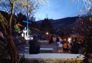 Siguiendo el ejemplo de Fray Slavko Barbarić, el comienzo es a las 5 am. Y el encuentro consiste en: la Oración al Espíritu Santo, Misterios Gozosos y Dolorosos del Rosario, y antes de cada misterio leen uno de los mensajes de la Virgen. Qué momento de profunda presencia de Dios, en esa noche helada dónde solo se escuchaba el sonido del viento entre los arbustos, cuando todos de rodillas permanecimos en silencio unos minutos orando por los que sufren, durante el 5º Misterio Doloroso.