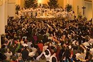 Immédiatement après la Messe, on prie à genoux le Credo, les sept Notre Père, Je vous salue Marie et Gloire au Père, suivis de la bénédiction des objets de dévotion, de la prière pour les malades et des mystères glorieux du Rosaire. En dehors de la célébration eucharistique du soir, les Messes sont célébrées avec des chants et homélies par groupes linguistiques.
