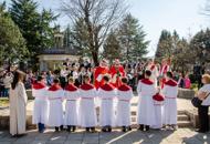 La Domenica delle Palme o della Passione del Signore ci introduce nella Settimana Santa, culmine della preparazione alla più grande Solennità cristiana: la Pasqua. Il 20 marzo la Liturgia della Domenica delle Palme ha avuto inizio, come negli anni passati, nel luogo in cui si trovano le fondamenta dell’antica chiesa parrocchiale. Dopo la proclamazione del Vangelo dell’ingresso del Signore in Gerusalemme e la Benedizione dei rami d’ulivo, ministranti, lettori, cantori, sacerdoti e popolo di Dio — ossia parrocchiani e pellegrini — si sono diretti in Processione liturgica all’Altare esterno della Chiesa Parrocchiale di San Giacomo, dove, alle ore 11:00, fra Karlo Lovrić ha presieduto la Santa Messa della Passione del Signore. Il coro parrocchiale, diretto da suor Irena Azinović, ha animato la Celebrazione Liturgica. L’omelia è stata tenuta da fra Vjekoslav Milićević. Anche quest’anno, ai parrocchiani si sono uniti numerosi pellegrini provenienti dai paesi vicini della Bosnia Erzegovina, dalla Croazia e dall’estero. Oltre alle quattro Sante Messe in lingua croata — celebrate alle ore 7:00, 8:00, 11:00 e 18:00 — nel corso della giornata ne sono state celebrate anche altre nelle lingue dei pellegrini stranieri presenti. Molti pellegrini si sono uniti anche alla preghiera del Rosario sul Podbrdo, iniziata alle ore 14:00. Oltre ai numerosi fedeli che prendono parte al consueto programma di preghiera, si fanno ogni giorno più lunghe le file di coloro che, di fronte ai confessionali di Medjugorje, attendono pazientemente di potersi accostare al Sacramento della Riconciliazione. (foto)