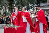La Domenica delle Palme, o della Passione del Signore, ci ha introdotto nella Settimana Santa, culmine della preparazione alla Solennità della Risurrezione di Gesù. Il 25 marzo 2018, a Medjugorje, la solenne Liturgia della Domenica delle Palme ha avuto inizio, come negli anni passati, nel luogo in cui si trovano le fondamenta dell’antica chiesa parrocchiale. Dopo la proclamazione del Vangelo dell’ingresso del Signore in Gerusalemme e la Benedizione dei rami d’ulivo, la processione liturgica — composta da ministranti, lettori, cantori, sacerdoti e dal Popolo di Dio — si è diretta in chiesa parrocchiale dove, alle ore 11:00, fra Karlo Lovrić ha presieduto la Santa Messa della Passione del Signore. I canti liturgici sono stati eseguiti dal coro parrocchiale, diretto da suor Irena Azinović.