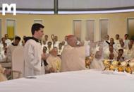 radunati per l'Eucaristia sotto lo sguardo della Madre di Dio, rimaniamo stupiti dalla grazia che il Signore effonde su di noi continuamente. Tutto é grazia: il dono della Chiesa, della Parola e del Pane, la bellezza della creazione e il volto dei fratelli. I] Padre buono vuole che seguiamo il Figlio per trovare la beatitudine. Dio non é un reclutatore di personale ma la fonte della Vita e vuole che tutti vivano appieno. Seguiamo il Signore perché abbiamo creduto che Lui solo porta la vita. La sequela non ha età, non chiede di essere bravi o arrivati. E gratuita, perché il Padre buono ama il vaso di argilla che siamo! Non ci sono curricula da presentare. Questo ci riempie di gioia, ma toglie anche ogni alibi: nessuno può dite di non essere adatto alla santità in nome dei suoi errori e delle sue fragilità. La sequela teme le scorciatoie, non i peccati!